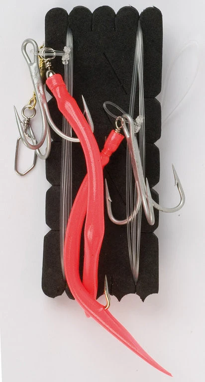Ein effektives Rig für die Fischerei im Nordatlantik oder Fjord auf Großdorsche, Großköhler oder Heilbutt. Es kommt dann zum Einsatz, wenn übereifrig beißende Kleinköhler die Angelei zur lästigen Nervenprobe machen. Einfach warten, bis ein Halbstarker auf den Makk beißt, dann die Montage weiter in die Tiefe ablassen (mal 10 m hoch, mal wieder runter) und jetzt nur noch warten, bis ein Großer auf den Drilling beißt – dann schäppert’s richtig!