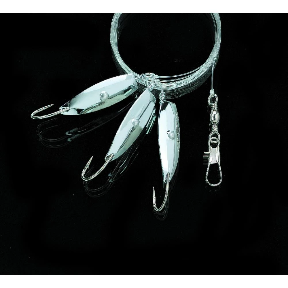 Dieses super Vorfach hat eine Länge von 220cm. Die drei Dorschblinker der Größe 5/0 sind an der 0,70mm starken Schnur befestigt.