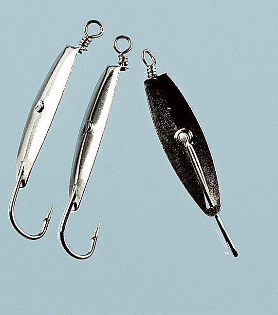 Die Packung enthält 3 silberfarbene, lose Makrelen-Blinker in der Hakengröße 3/0.