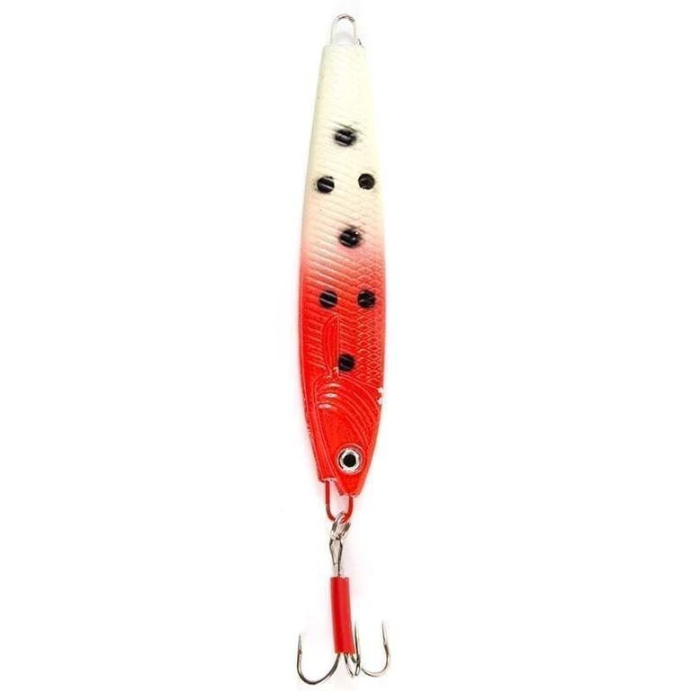 Dieser Pilker in seinen zehn verschiedenen Farben, deckt alle Einsatzzwecke für verschiedene Wetterbedingungen ab. Die Gewichten reichen von 28g bis 300g. Der Pilker ist bleifrei.