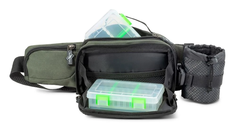 Besonders klein und leicht, fällt der Iron Claw Hip Man II beim Tragen kaum auf und bietet dank seiner zwei integrierten Boxen ausreichend Platz für Ihre Köder. Weitere Ausstattungsmerkmale sind, eine aufgesetzte Außentasche, ein Tragegriff und ein Zangenholster. Der Getränkehalter kann bei Bedarf mittels Klettverschluss heraus genommen und der Clip beispielsweise zum Befestigen eine Keschers verwendet werden.