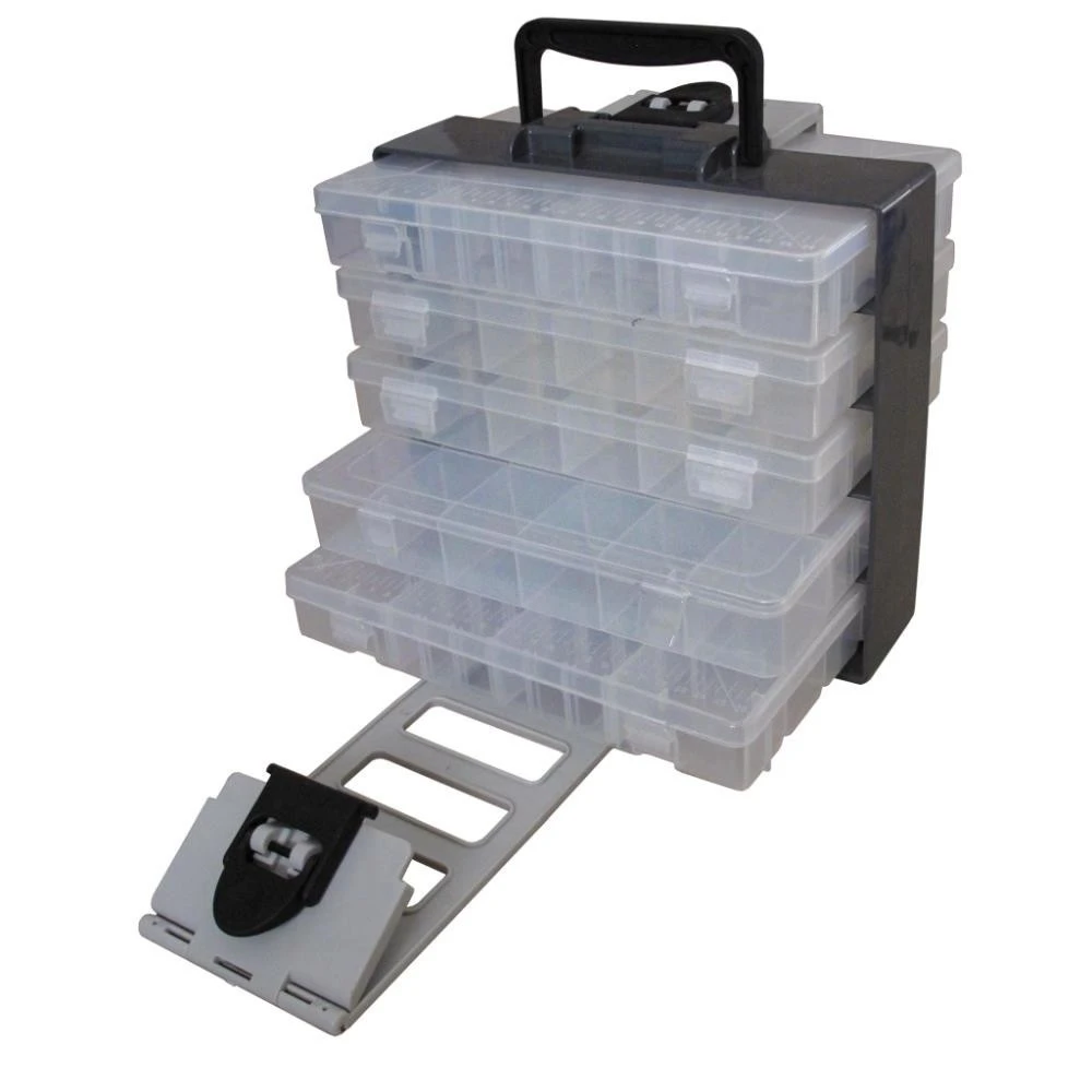 Dieses praktische und handliche Boxen-System (Angelgerätekoffer-System) verfügt über fünf einzelne Plastikboxen zur Aufbewahrung von Ködern, Zubehör usw. Somit kann beispielsweise im Auto, auf dem Boot oder im Zelt Ordnung geschaffen werden. Dieses Boxen-System lässt sich für viele Angelmethoden gleichzeitig verwenden. Erhältlich in zwei verschiedene Größen.