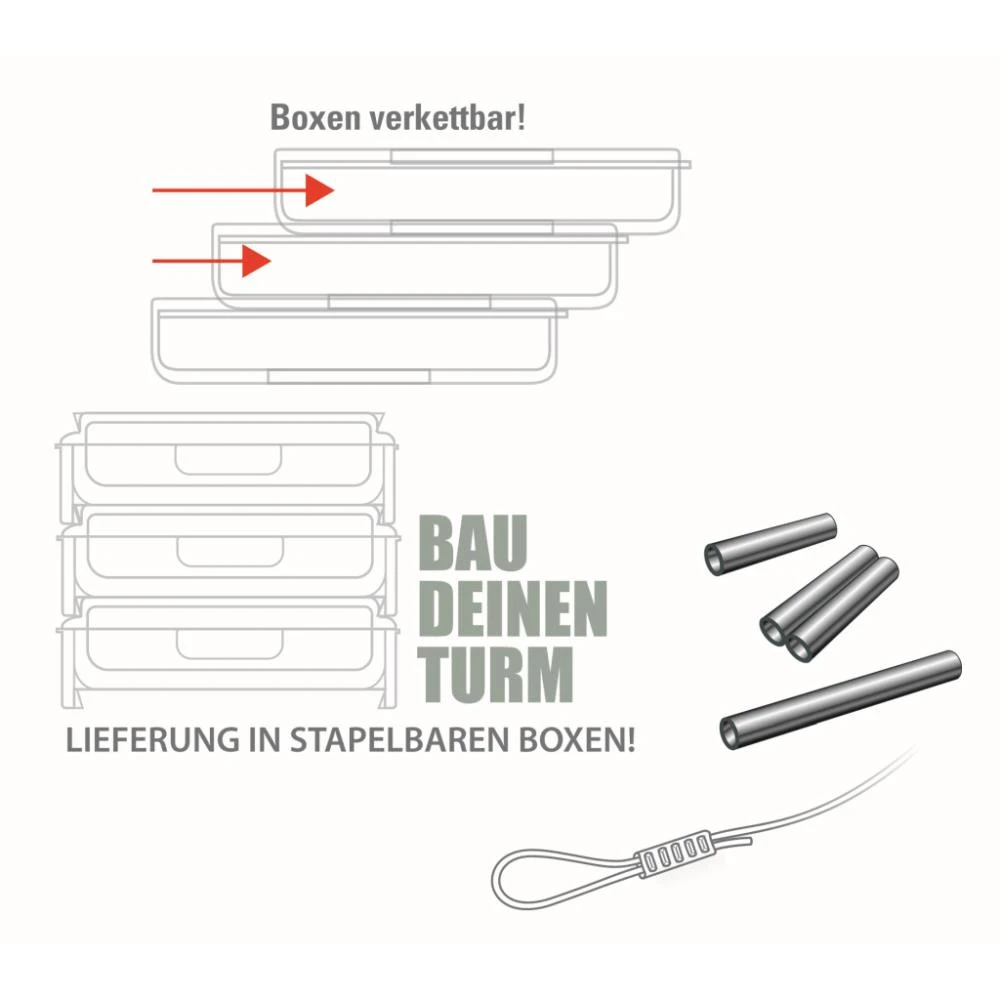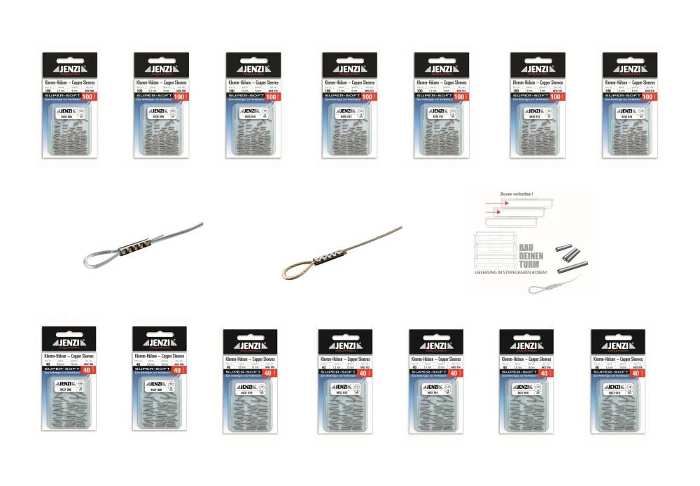 Diese Quetsch-Hülsen sind ideal für Anfertigung von Vorfächern. Der Inhalt ist abhängig von der Größe. Bei einer Länge von 8mm sind 100 Stück und bei einer Länge von 15mm 40 Stück enthalten.
