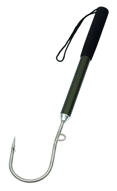Diese wirklich starke Gaff wird Ihr bester Begleiter sein, wenn ein großer Heilbutt oder Dorsch am Haken hängt. Die Sicherheitsöse kann an einem Seil oder Draht befestigt werden. Bitte stellen Sie sicher, dass das Gaff immer mit Vorsicht behandelt wird.