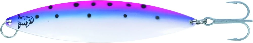 Blau-Silber mit Magentastreifen – ein echter Sonnenschein. Mit Kupferinnenseite der Geheimtipp vieler Trolling Guides in den letzten Jahren. Fängt topp bis 15 Meter.