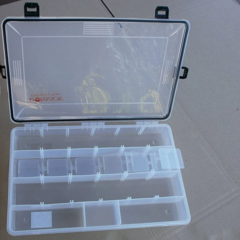 Diese Zubhörbox hat eine Größe von 35,5 x 23 x 5cm und verfügt über frei einteilbare Fächer. Ein Dichtungsgummi am Deckelrand sorgt für höhere Wasserdichtigkeit.