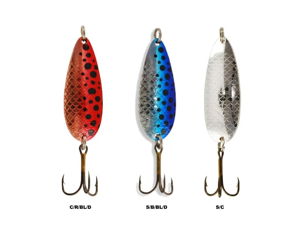 Einer zum Lachsfischen! Pirate wurde in den 2000er Jahren im Silver Hook-Sortiment neu aufgelegt. Die große Auflagefläche macht ihn zu einem Liebling vieler begeisterter Lachsfischer. Die roten und blauen Versionen sind innen zweifarbig, während die S/C-Variante innen silber und kupferfarben ist. Es gibt zwei verschiedene Modelle mit 18g und 30g, sowie drei Farbkombinationen.