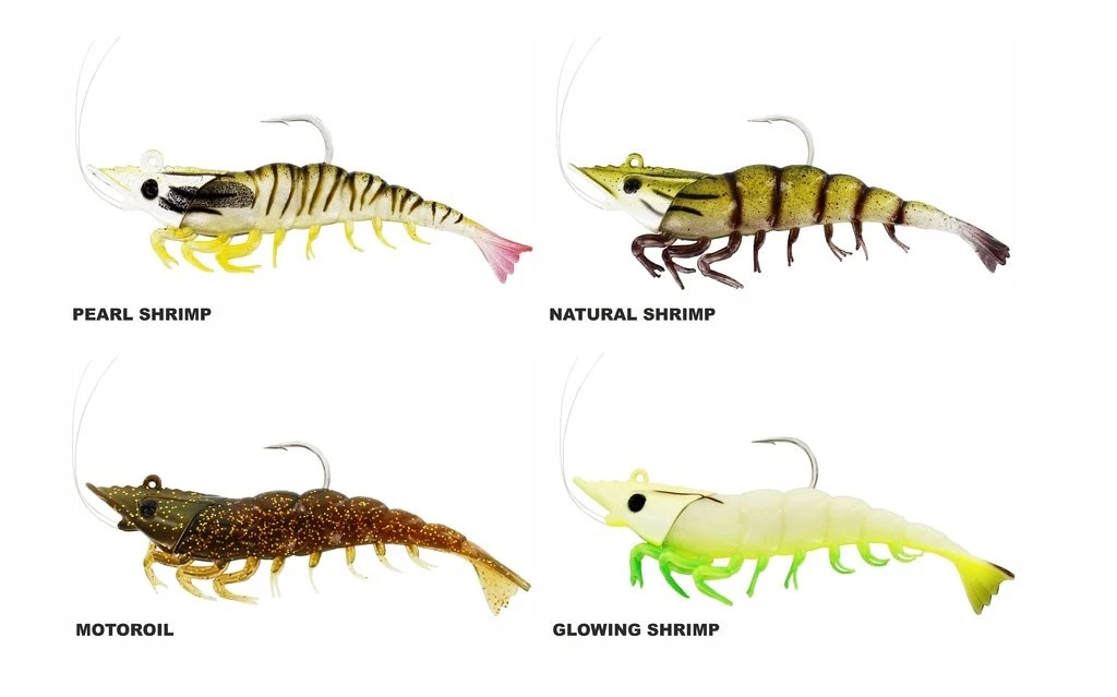 Bei dieser Version ist der Kopf vom Körper getrennt und besteht somit aus zwei verschiedenen Teilen, die man individuell zusammenstellen kann. Der Bleikopf ist ein naturgetreues Design einer Garnele und passt perfekt zum Körper, der durch einen innenliegenden Hakenkanal einfach zu montieren ist. Die zwei unterschiedlichen Körper unterscheiden sich durch die Schwanzformen – 1 Mal gibt es eine natürliche Garnelenform und 1 Mal einen Paddelschwanz für mehr Aktion. Es gibt zwei Größen von 8cm (18g) und 11cm (28g).