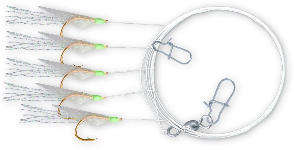 Beim Heringsangeln kommt es auf das richtige Vorfach an. Somit fangen einige Angler immer deutlich mehr Fische als andere. Das Holografix Vorfach vereint alle wichtigen Eigenschaften, damit der Fangeimer schnell gefüllt ist. Scharfe, stabile Haken gebunden mit echter Fischhaut und zusätzlichen holografischen Fäden machen dieses Vorfach perfekt. Es gibt drei verschiedene Farben mit jeweils 5 Haken zur Auswahl. Die verwendeten Haken haben die Größe 10 bzw. 8.